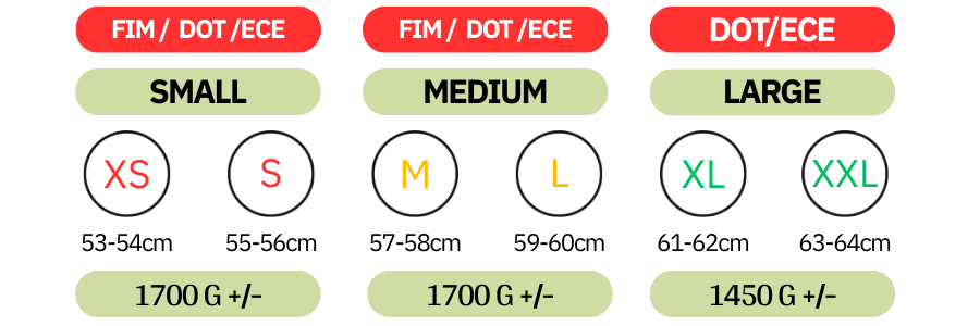 Full carbon helmet complies with the highest racing approval standards: FIM standard (XS - L), DOT& ECE 22.06.