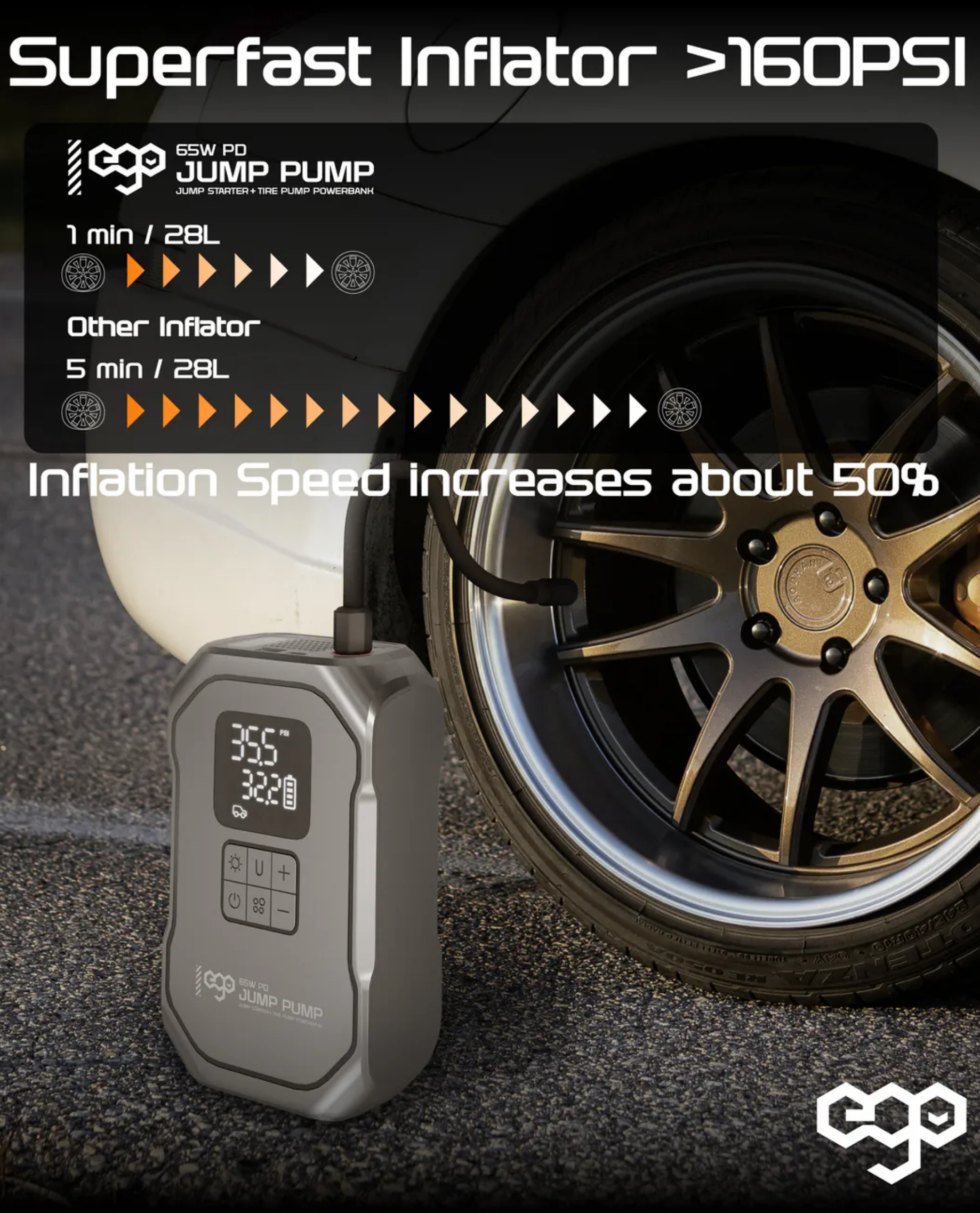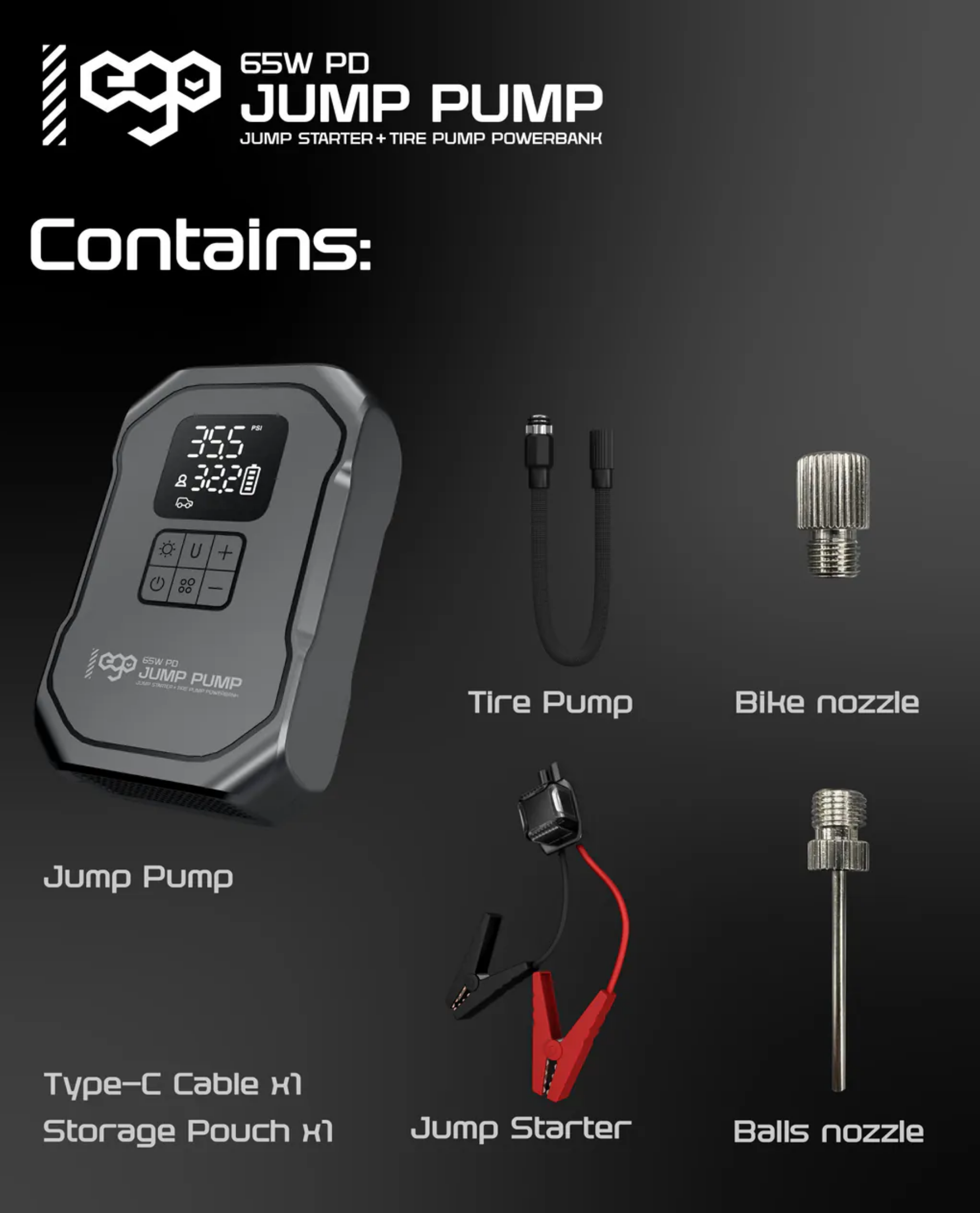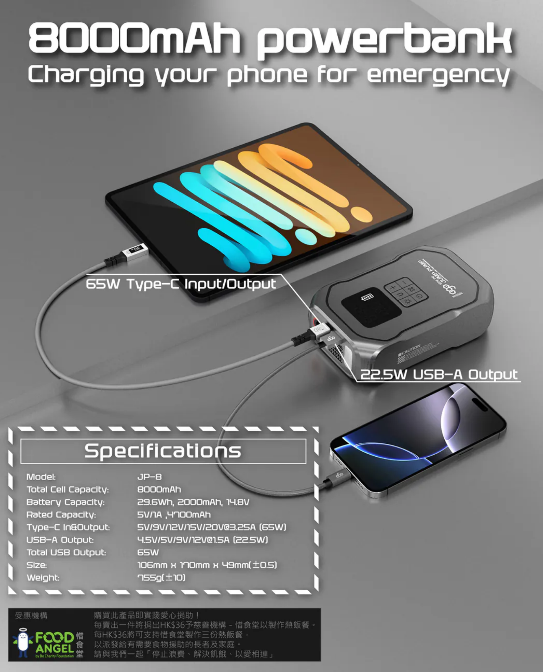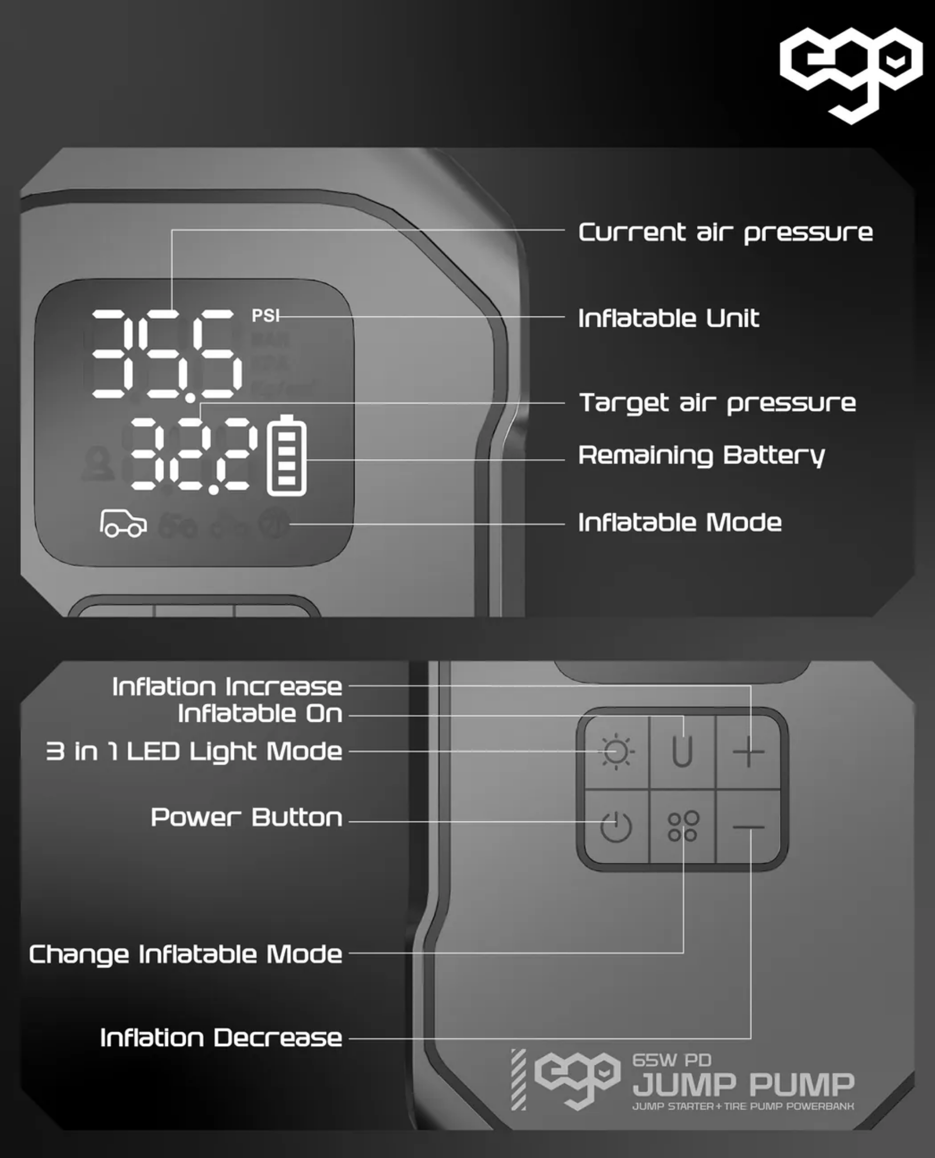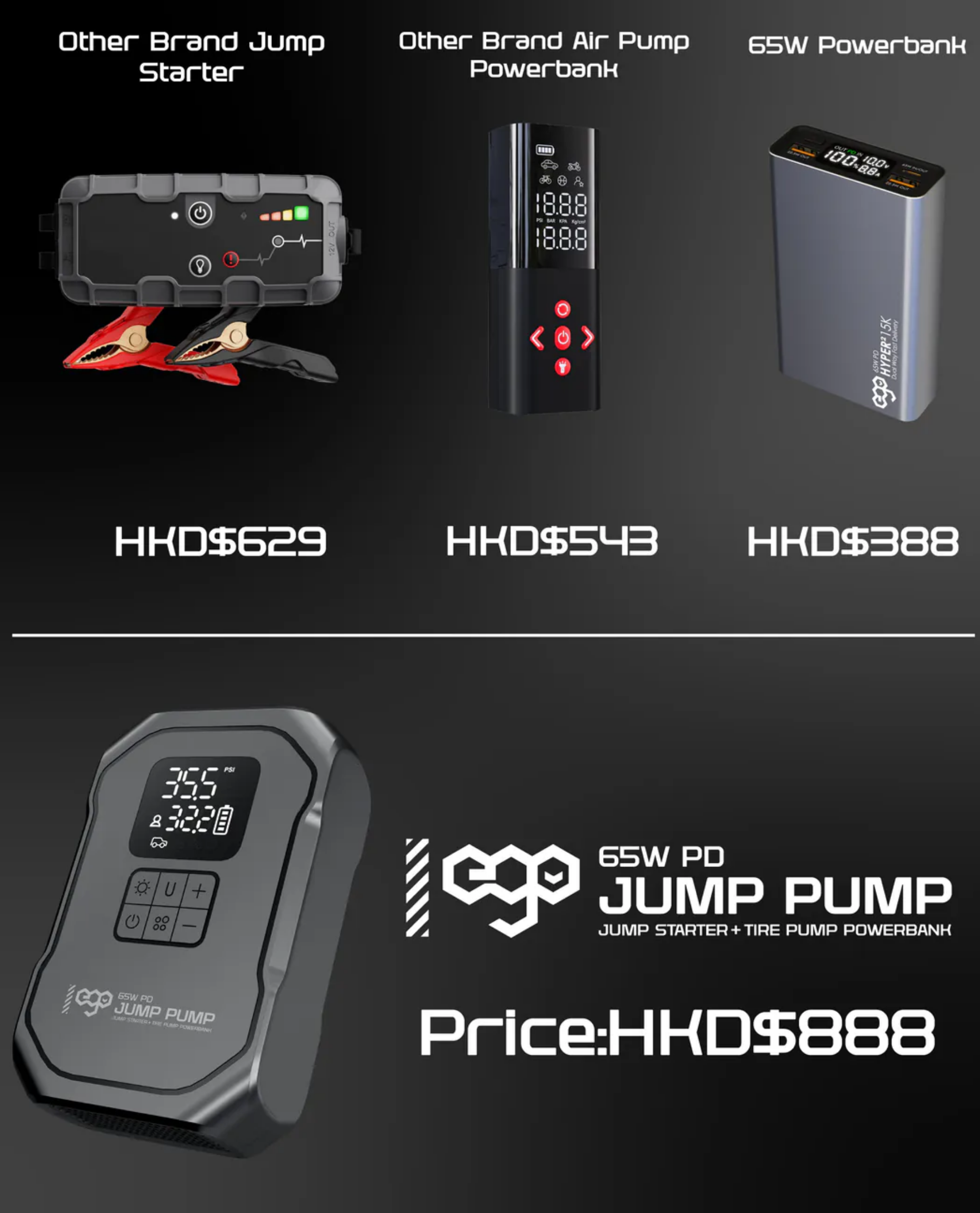 過江龍 / 車呔氣泵 / 65W 快充 / 照明及閃燈 / 超長待機外置電